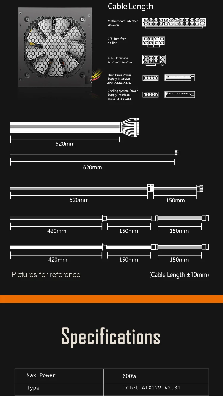 Aigo AK PC PSU Unidade de fonte de alimentação 500W 600W 700W 800W 1000W Gamin