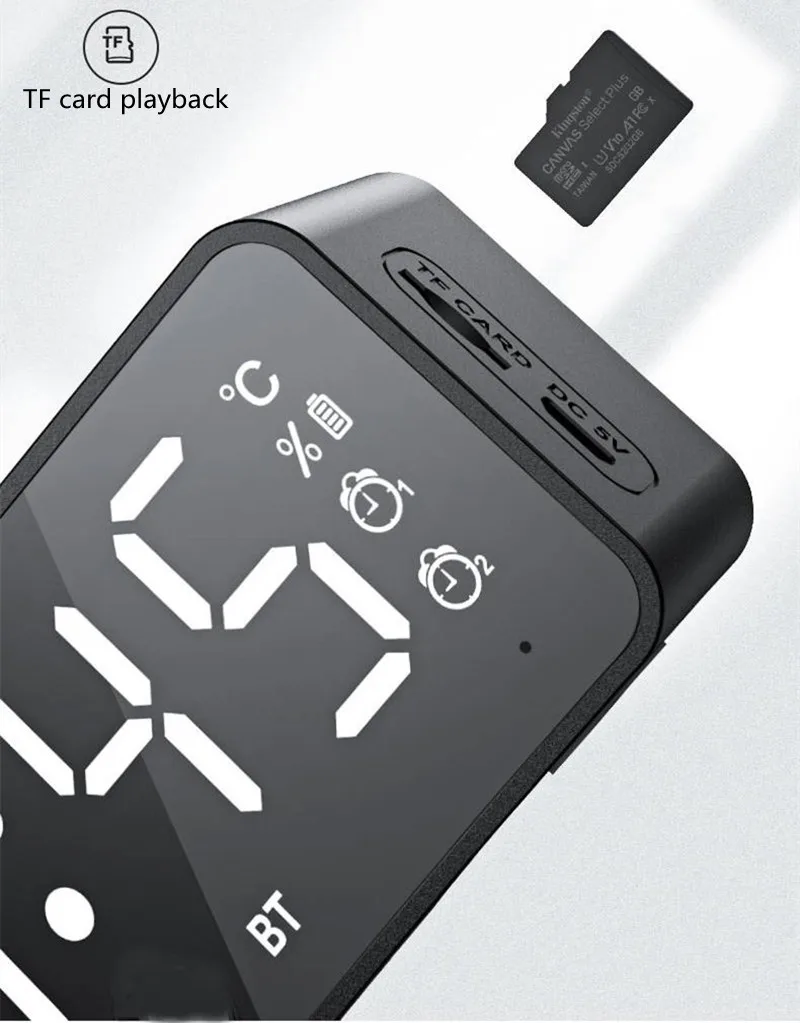 Despertador rádio fm bluetooth alto-falante portátil subwoofer caixa de som ca