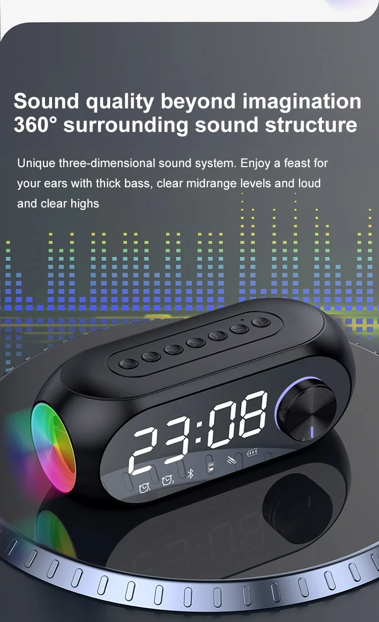 - > Despertador rádio fm bluetooth alto-falante portátil subwoofer caixa de som ca
