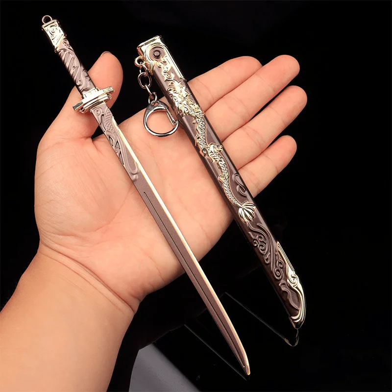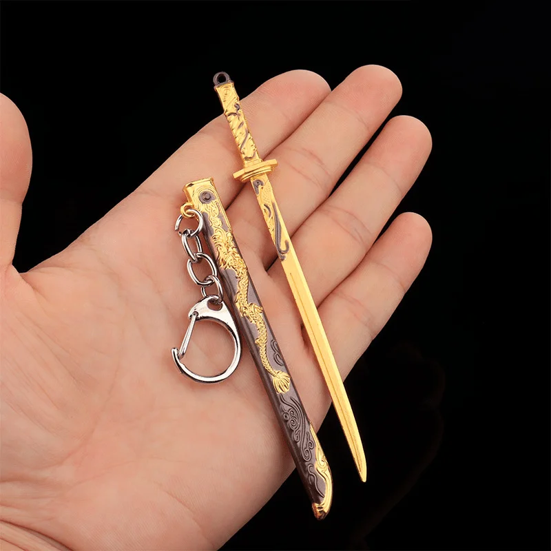 - > Liga de zinco bainha de metal de famoso antigo espada chaveiro lâmina não aber